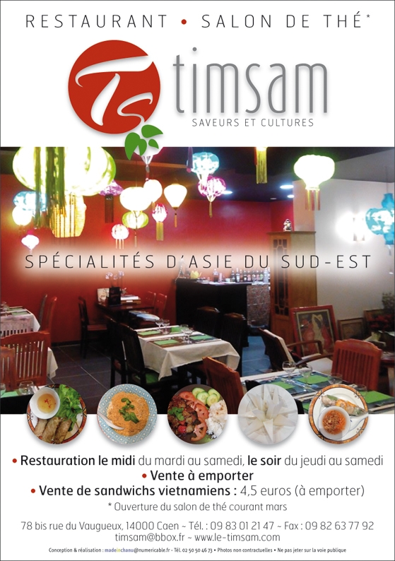 Restaurant de l'Asie du sud Est et salon de thé situé à Caen. Proposant des plats vietnamiens, laotiens, thaïlandais et également des sandwichs Banh mi et plats à emporter. Restaurant asiatique à vocation culturelle proposant des jeux de société tel que le Mah-jong, jeux de go ou encore des expositions diverses et concerts. C'est également un lieu d'échange entre culture asiatique et normande. Tous les plats et desserts y sont "fait maison" avec des produits frais.